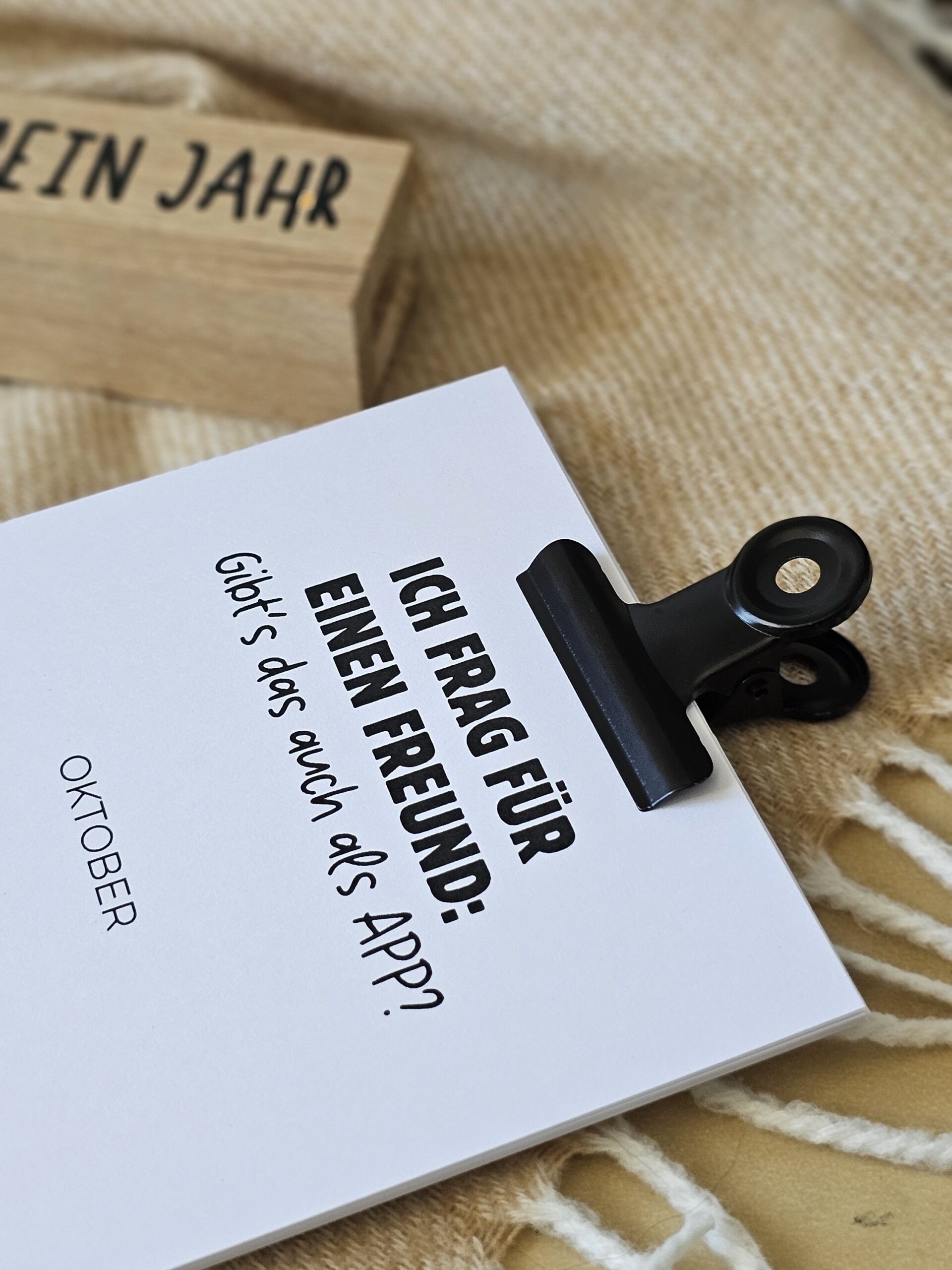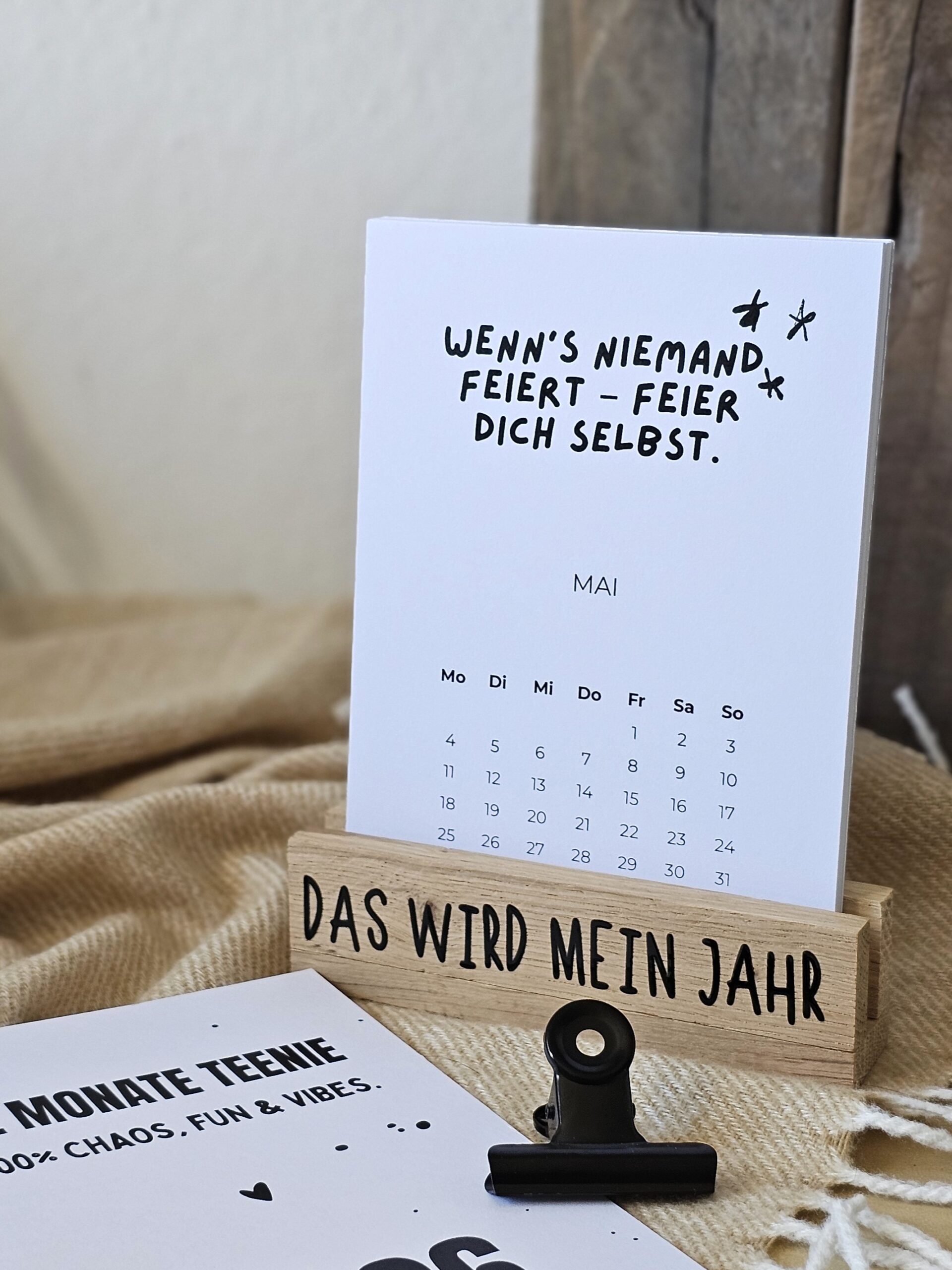- Optional: gravierter Holzhalter „Das wird mein Jahr”